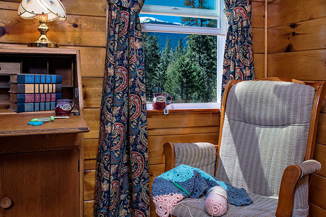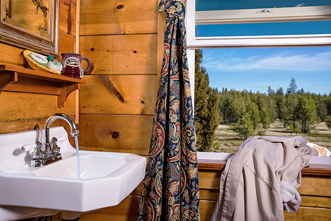 Every morning, brilliant sunrise filters into the Sunrise Room, illuminating the space with warm, inviting shades of white and blue. This room offers breathtaking views of the mountains, forest, horse pasture, and trout ponds. The Sunrise Room features rustic wood paneled walls and two comfortable Queen Sized Beds. You will wake up every morning with miraculous nature panoramas and the pleasant warmth of the California sun.