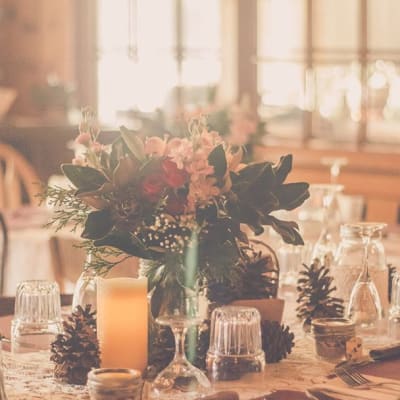 The dining room is available for special parties for groups of up to 50 guests. The lodge is an ideal location for rehearsal dinners, business meetings, anniversary dinners, surprise parties, and Christmas parties. Adding an overnight stay makes the event extra special, but is not required.