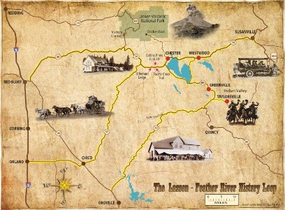The Lassen – Feather River History Loop covers a large area in North Eastern California. It includes parts of Tehama, Plumas and Lassen counties. The loop includes history, regional stories of diverse geology, fantastic night sky viewing spots, amazing bird watching opportunities, and conservation activities that reflect the passion for the land of those that live here. The loop highlights the rich history of the region and the many activities the area has to offer visitors.
